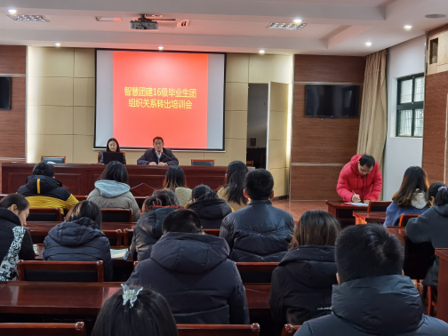 12月16日下午,校团委在教学楼B楼102会议室举行了2016级毕业生团组织关系转出培训会。本次交流活动由校团委陈桦老师主持,出席会议的有校党委副书记占百春,校团委李文广,各系团总支书记及16级团支部辅导员们。