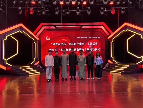 4月28日苏州市教育局在苏州广播电视总台举办了“以青春之名,续写百年华章”纪念五四运动102周年主题活动,本次活动由苏州市教育局和苏州广播电视总台联合打造、名城苏州网承办,市教育局局长周志芳、苏州广电总台党委书记沈玲出席活动并致辞,我校党委副书记占百春,校团委副书记陈桦及学生代表们参加了本次活动。