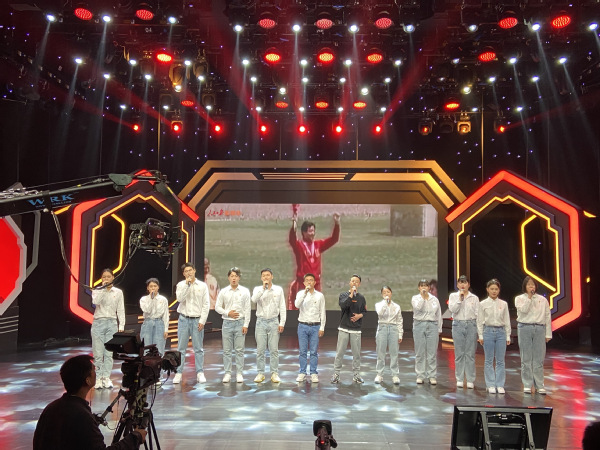 王东老师以及楼陆晨,唐小青等4名同学一同参与党史版《少年》歌曲合唱