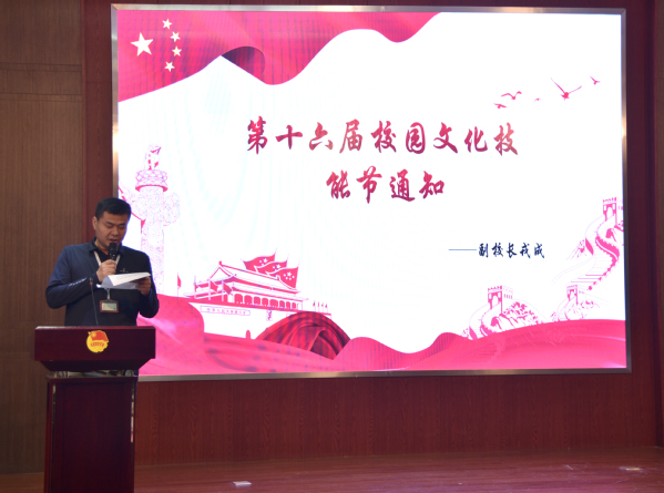 开幕式首先由副校长戎成宣读本届文化技能节的通知。校党委副书记占百春致开幕词,他指出我们职业学校作为高素质技术技能人才、能工巧匠甚至是大国工匠的摇篮,更要牢固树立“红船精神领航 工匠精神建功”的理念,希望广大青年能以本届文化技能节为契机,共同携手扬起爱党、爱国、爱社会主义的大旗,张起文化、技能、创新的风帆。