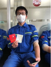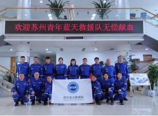 物流19401班的朱睿是苏州青年蓝天救援队的一员。1月22日上午,活动现场,他和20多名蓝天救援队员根据医务人员指导井然有序进行着献血活动。