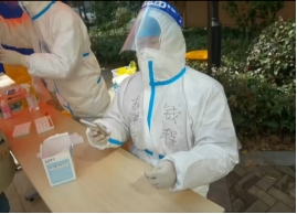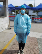 报关18401班的倪珺于苏州火车站协助医护人员核酸检测。由于火车站的特殊性,她24小时都要随时待命,陪同医护人员和志愿者轮班休息,一天8小时在岗时间,工作到凌晨也是家常便饭。