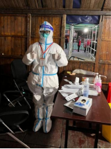 报关17401班朱玉婷,物流管理17402班谈婕,物流21402班的梁凯成,在疫情来临之初,他们积极地加入到防疫一线工作中,并服从领导安排,配合医务人员帮助无法出门以及行动不便的居民们上门核酸、提醒排队等候的市民们戴好口罩并提前准备好身份证以及入口指引。