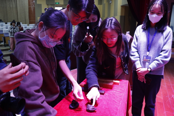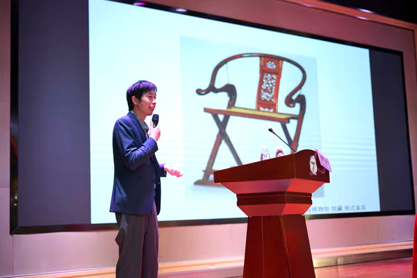 苏作木雕构思精美、内涵深刻,既能美化环境,又能陶冶情操。讲座上,钟老师首先介绍了苏作木雕的发展历史,通过对各时期苏作木雕的工艺特点、使用材料以及代表作品的讲解,让同学们对苏作木雕有了初步的认识。随后,钟老师详细介绍了苏作红木木雕的制作工艺和流程,指出其制作手法丰富、不拘一格的特点。他认为,一件优秀的红木作品不仅仅是产品,更是作者对红木雕刻技艺的传承、思考和探索。最后,在互动环节,钟老师带来了精美的苏作红木木雕,通过近距离欣赏这些优秀的作品,同学们不但了解了苏作红木木雕蕴含的宝贵价值,更从中领略到专注、坚守、精益求精的匠人品质。
